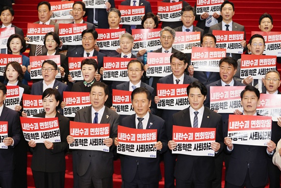 ¹ÎÁÖ´ç ÀÇ¿øµéÀº À̳¯ ±âÀÚȸ°ß¿¡¼ ¡®³»¶õ¼ö±« ¸éȸ ¸Áµ¿, À嵿ÇõÀº »çÅðÇ϶ó¡¯, ¡®À±¼®¿ º¹±Í ½ÃµµÇÏ´Â À嵿Çõ ±Ôꡝ µîÀÇ ¹®±¸°¡ ÀûÈù ÇÇÄÏÀ» µé°í ¡°Á¦2 ³»¶õ ȹåÇÏ´Â À嵿ÇõÀº »çÅðÇÏ¶ó¡±°í ±¸È£¸¦ ¿ÜÃÆ´Ù.