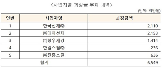 °øÁ¤°Å·¡À§¿øÈ¸°¡ ¾Æ¿¬µµ±Ýö¼± µî ö° Áß°£Àç °¡°ÝÀ» ´ãÇÕÇÑ 5°³ ö°¾÷ü¿¡ ½ÃÁ¤¸í·É°ú ÇÔ²² ÃÑ 65¾ï ¿øÀÇ °ú¡±ÝÀ» ºÎ°úÇß´Ù. ¾÷üµéÀº ¿øÀÚÀç °¡°Ý »ó½Â¿¡ ¸ÂÃç °øµ¿À¸·Î °¡°ÝÀ» ÀλóÇÏ¸é¼ Ç϶ô±â¿¡´Â ±âÁ¸ °¡°ÝÀ» À¯ÁöÇÏ´Â ¹æ½ÄÀ¸·Î Àå±â°£ ´ãÇÕÀ» ¹úÀÎ °ÍÀ¸·Î µå·¯³µ´Ù.