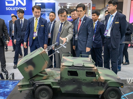 ¾È±Ô¹é ±¹¹æºÎ Àå°üÀÌ °æ±â °í¾ç½Ã ŲŨ½º¿¡¼ ¿¸®°í ÀÖ´Â 21ÀÏ ¡®¼¿ï ±¹Á¦ Ç×°ø¿ìÁÖ ¹× ¹æÀ§»ê¾÷ Àü½Ãȸ(ADEX) 2025¡¯ ÇöÀåÀ» ¹æ¹®ÇØ Àü½ÃÀåÀ» µÑ·¯º¸°í, ±¹³» ¹æÀ§»ê¾÷ ±â¼úÀÇ ¹ßÀü ¹æÇâ°ú ¼öÃâ È®´ë °¡´É¼ºÀ» Á¡°ËÇß´Ù.