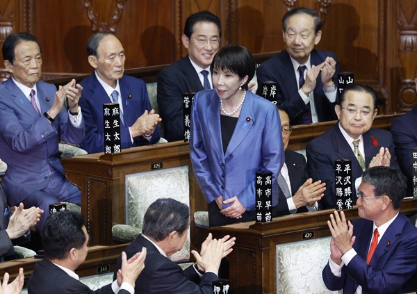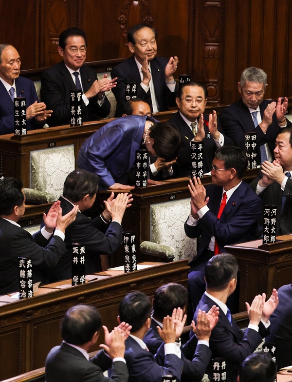 ¡ã ÀϺ» Áý±Ç Àڹδç ÃÑÀç ´ÙÄ«ÀÌÄ¡ »ç³ª¿¡°¡ 21ÀÏ ÁßÀÇ¿ø ÀÓ½ÃȸÀÇ¿¡¼ ÃѸ® Áö¸í ¼±°Å¸¦ ¾ÐµµÀûÀÎ ÁöÁö·Î Åë°úÇϸç ÃѸ®·Î ¼±ÃâµÇÀÚ µ¿·áÀÇ¿øµéÀÌ ¹Ú¼ö¸¦ º¸³»°í ÀÖ´Ù. Á¦104´ë ÀϺ» ³»°¢ÃѸ®´ë½Å¿¡ °ø½Ä ÃëÀÓÇÏ´Â ´ÙÄ«ÀÌÄ¡´Â ¾Æº£ ½ÅÁ¶ Àü ÃѸ®ÀÇ °æÁ¦ Á¤Ã¥°ú º¸¼ö ¼ºÇâÀ» °è½ÂÇØ '¿©ÀÚ ¾Æº£'¶ó´Â º°ÄªÀ¸·Î ºÒ¸®¸ç ¿ø³» ÁÖµµ±ÇÀ» È®½ÇÈ÷ Çß´Ù. ±×ÀÇ Áý±ÇÀº Àڹδç°ú ¿À·£ µ¿¸Í °ü°è¿´´ø °ø¸í´çÀÇ ¿¬¸³ ÀÌÅ»°ú ÇÔ²², »õ·Î¿î Á¤Ä¡ ±¸µµ ¼Ó º¸¼ö ¿¬¸³ ³»°¢ Ãâ¹üÀ» ÀǹÌÇÑ´Ù. ¿¬ÇÕ´º½º