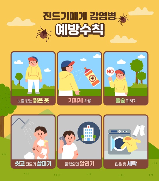 °¡À»Ã¶ ³óÀÛ¾÷°ú µî»ê Ä·ÇÎ µî ¾ß¿Ü Ȱµ¿ÀÌ ¸¹¾ÆÁö¸é¼ Áøµå±â ¸Å°³ °¨¿°º´¿¡ ´ëÇÑ ÁÖÀǰ¡ ÇÊ¿äÇÏ´Ù. ±¹³» ´ëÇ¥ÀûÀÎ Áøµå±â ¸Å°³ ÁúȯÀº ÂêÂê°¡¹«½ÃÁõ°ú ÁßÁõ¿¼ºÇ÷¼ÒÆÇ°¨¼ÒÁõÈıº(SFTS)ÀÌ ´ëÇ¥ÀûÀÌ´Ù.