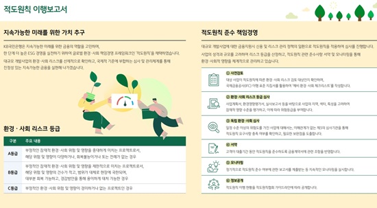 ƯÈ÷ ´ë±Ô¸ð ÇÁ·ÎÁ§Æ® ÆÄÀ̳½½Ì(PF) °úÁ¤¿¡¼ ȯ°æ¡¤»çȸÀû ¸®½ºÅ©¸¦ ü°èÀûÀ¸·Î °ü¸®Çϱâ À§ÇÑ ¡®Àûµµ¿øÄ¢(Equator Principles)¡¯À» äÅÃÇÏ¿© ¿î¿µÇÑ´Ù°í °øÇ¥Çϰí ÀÖ´Ù. Àûµµ¿øÄ¢Àº ´ë±Ô¸ð °³¹ß »ç¾÷ÀÌ È¯°æ ÆÄ±«³ª ÀÎ±Ç Ä§ÇØ ¹®Á¦¸¦ ÀÏÀ¸Å³ °æ¿ì ±ÝÀ¶ Áö¿øÀ» ÇÏÁö ¾Ê°Ú´Ù´Â Àü ¼¼°è ±ÝÀ¶±â°ü °£ÀÇ ÀÚ¹ßÀû Çù¾àÀÌ´Ù.