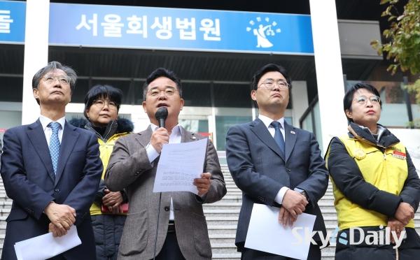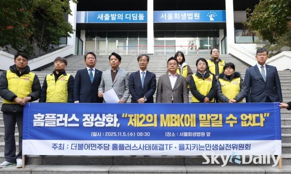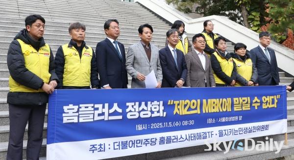 ¡ã MBK ȨÇ÷¯½º »çÅÂ ÇØ°á ŽºÅ©Æ÷½º(TF) ´ÜÀåÀ» ¸ÃÀº ´õºÒ¾î¹ÎÁÖ´ç À¯µ¿¼ö ÀÇ¿øÀÌ 5ÀÏ ¼­¿ïȸ»ý¹ý¿ø ¾Õ¿¡¼­ ¸¶Æ®»ê¾÷³ëÁ¶ ȨÇ÷¯½ºÁöºÎ Á¶ÇÕ¿ø, ¹Îº´´ö¡¤±è½Â¿ø ÀÇ¿ø µî°ú ÇÔ²² ȨÇ÷¯½º Á¤»óÈ­ Ã˱¸ ±âÀÚȸ°ßÀ» Çϰí ÀÖ´Ù. À̳¯ ±âÀÚÈ­°ß¿¡¼­ ¡°È¨Ç÷¯½º ÀμöÀÇÇâ¼­¸¦ Á¦ÃâÇÑ µÎ ȸ»ç´Â Á¤»óÈ­ ÀÇÁö ¾øÀÌ ¸ÔÆ¢¸¦ ³ë¸®°í ¶Ù¾îµç ±â¾÷¡±À̶ó¸ç ȸ»ý°èȹ¼­ Àΰ¡ Àü ÀμöÇÕº´(M&A)¸¦ ¿¬±âÇϰí ÀμöÀÚ °ø°³¸ðÁý±â°£À» ¿¬ÀåÇØ¾ß ÇÑ´Ù°í ÁÖÀåÇß´Ù. ¹Ú¹Ì³ª ±âÀÚ ¨Ï½ºÄ«À̵¥Àϸ®