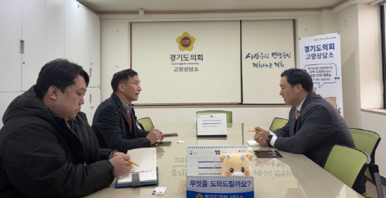 ¡ã°íÁØÈ£(¿À¸¥ÂÊ) °æ±âµµÀÇȸ ÀÇ¿øÀÌ °í¾ç»ó´ã¼Ò¿¡¼­ ½Ãû ÀÚ¿ø¼øÈ¯°ú °ü°èÀÚµé°ú Á¤´ãȸ¸¦ °¡Á³´Ù. °æ±âµµÀÇȸ
