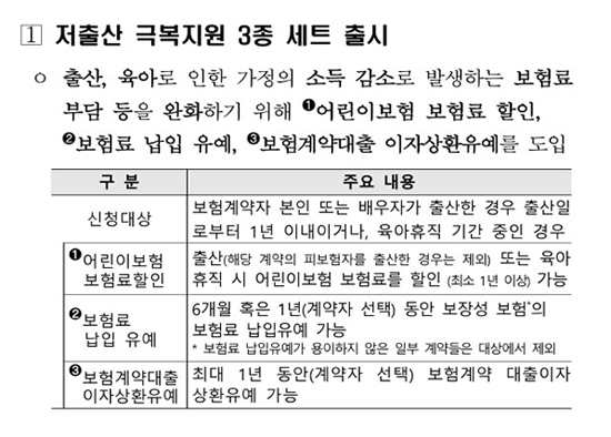 ¿ì¼± ÀúÃâ»ê ±Øº¹ Áö¿øÃ¥ ¡®3Á¾ ¼¼Æ®¡¯°¡ 4¿ù Áß µµÀԵȴÙ. Ãâ»ê¡¤À°¾Æ·Î ÀÎÇÑ ¼Òµæ °¨¼Ò·Î º¸Çè·á ºÎ´ãÀÌ Ä¿Áö´Â Á¡À» °¨¾ÈÇØ ¡â¾î¸°À̺¸Çè º¸Çè·á ÇÒÀÎ ¡âº¸À强º¸Çè º¸Çè·á ³³ÀÔ À¯¿¹ ¡âº¸Çè°è¾à´ëÃâ ÀÌÀÚ »óȯ À¯¿¹¸¦ ¹­¾î Áö¿øÇÑ´Ù´Â ±¸»óÀÌ´Ù.