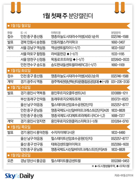 »õÇØ ù ÁÖ ºÐ¾ç½ÃÀåÀº ÇÑ»êÇÑ È帧À» º¸ÀÏ Àü¸ÁÀÌ´Ù. ºÎµ¿»êR114¿¡ µû¸£¸é ÀÌ´Þ Ã¹Â° ÁÖ Àü±¹¿¡¼­ ºÐ¾çÀ» ½ÃÀÛÇÏ´Â ´ÜÁö´Â 1°÷À¸·Î, ÃÑ 297°¡±¸°¡ ÀϹݺоçµÈ´Ù. »õÇØ ºÐ¾çÀÇ Æ÷¹®Àº ÀÎõ Áß±¸ Á߻굿 ¡®¿µÁ¾Çϴõµ½Ã´ë¶ó¼ö¾î½æ¡¯ÀÌ ¿¬´Ù. ÀÌ ´ÜÁö´Â ÁöÇÏ 1Ãþ~Áö»ó ÃÖ°í 40Ãþ, 3°³ µ¿, 297°¡±¸ ±Ô¸ð·Î 2029³â 6¿ù ÀÔÁÖ ¿¹Á¤ÀÌ´Ù. ¿ÃÇØ 3¿ù °³±³ ¿¹Á¤ÀÎ ´ÞºûÃʱ³¿Í Áß¡¤°í±³°¡ ÀÎÁ¢ÇØ ÀÖÀ¸¸ç ±¹Á¦Çб³µµ µé¾î¼³ °èȹÀÌ´Ù. °ßº»ÁÖÅÃÀº 9ÀÏ °æ³² ¾ç»ê½Ã ¹°±ÝÀ¾ ¡®Èú½ºÅ×ÀÌÆ®¹°±Ý¼¾Æ®·²¡¯ 1°÷¸¸ °³°üÇÑ´Ù.