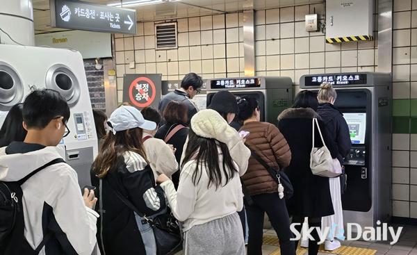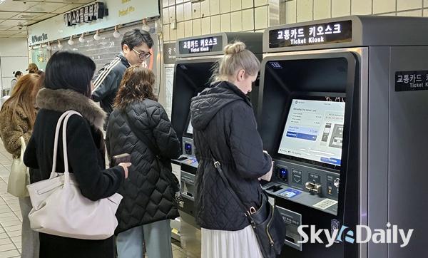 ¡ã 22ÀÏ ¼­¿ï ÁöÇÏö 2È£¼± À»Áö·ÎÀÔ±¸¿ª¿¡¼­ ¿Ü±¹ÀÎ °ü±¤°´µéÀÌ ½ÅÇü ±³ÅëÄ«µå Ű¿À½ºÅ©¸¦ ÀÌ¿ëÇØ ½ÂÂ÷±ÇÀ» ±¸¸ÅÇϰí ÀÖ´Ù. ¼­¿ï½Ã´Â ½Ã³» 1~8È£¼± 273°³ Àü ¿ª»ç¿¡ ¼³Ä¡µÈ ½ÅÇü ¹ß¸Å±â 440´ë¿¡¼­ ºñÀÚ¡¤¸¶½ºÅÍ µî ÇØ¿Ü ½Å¿ëÄ«µå¿Í °£Æí°áÁ¦(īī¿À¡¤³×À̹öÆäÀÌ) ¼­ºñ½º¸¦ º»°Ý Áö¿øÇÏ¸ç ¿Ü±¹ÀÎ À̿밴ÀÇ ÆíÀǸ¦ µ½°í ÀÖ´Ù. ÀÌÁ¾¿ø ±âÀÚ ¨Ï½ºÄ«À̵¥Àϸ®