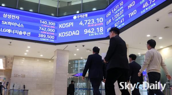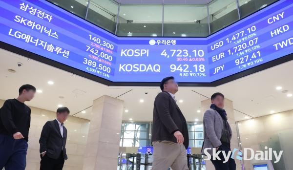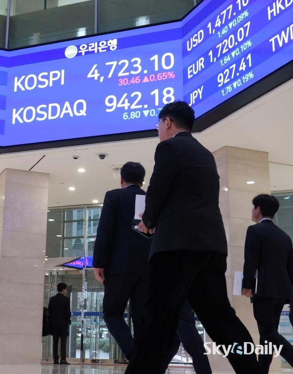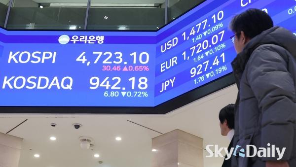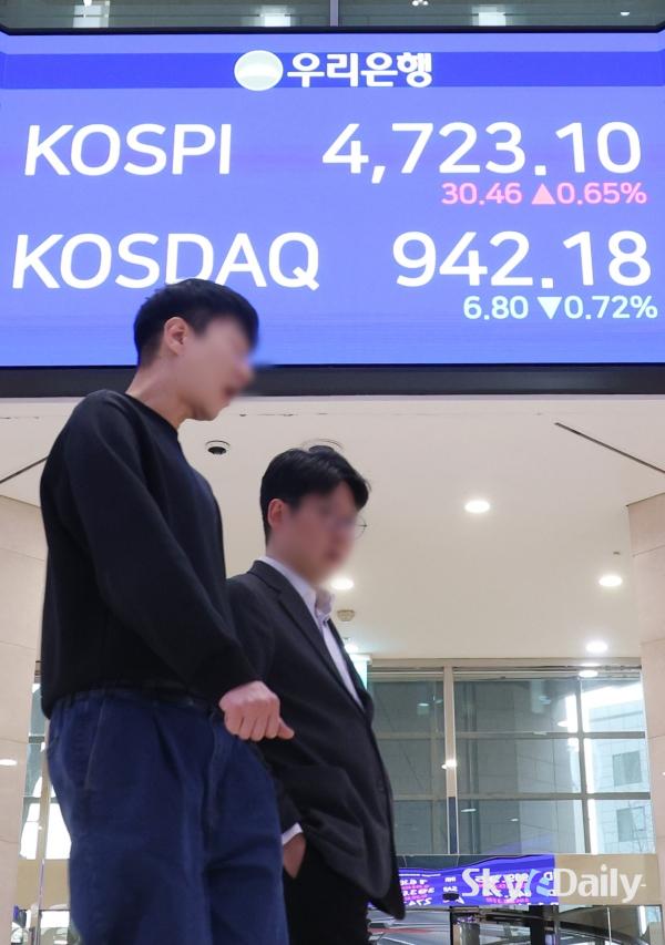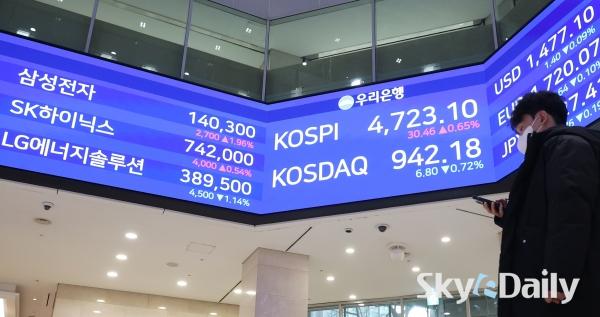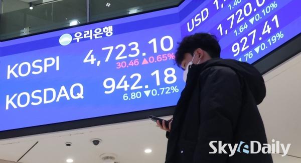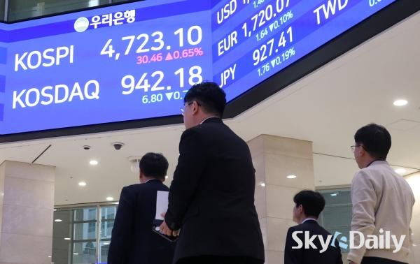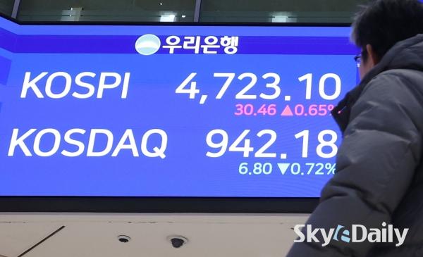 ¡ã ÄÚ½ºÇǰ¡ 14ÀÏ »ç»ó óÀ½À¸·Î 4,700¼±À» µ¹ÆÄÇØ ÀåÀ» ¸¶Ä£ 14ÀÏ ¼­¿ï Áß±¸ ¿ì¸®ÀºÇົÁ¡ ·Îºñ Àü±¤ÆÇ¿¡ ÄÚ½ºÇǰ¡ Ç¥½Ã µÅ ÀÖ´Ù. À̳¯ ÄÚ½ºÇÇ´Â 30.46p(0.65%) ¿À¸¥ 4723.10¿¡ ÀåÀ» ¸¶ÃÆÀ¸¸ç »óÀ§ 10°³ Á¾¸ñ Áß¿¡¼± ½ÃÃÑ 1À§ »ï¼ºÀüÀÚ°¡ 1.96% ¿À¸¥ 14¸¸300¿øÀ¸·Î ¸¶°¨Çß´Ù. SKÇÏÀ̴нºµµ 0.54% ¿À¸¥ 74¸¸2000¿ø¿¡ °Å·¡¸¦ ¸¶ÃÆ´Ù.    ¹Ú¹Ì³ª ±âÀÚ ¨Ï½ºÄ«À̵¥Àϸ®