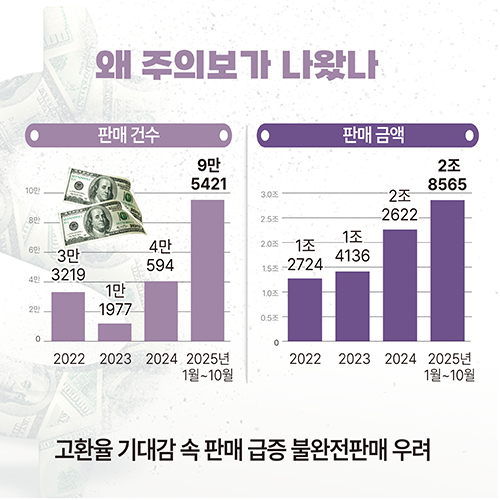 ±ÝÀ¶°¨µ¶¿øÀº 15ÀÏ ´Þ·¯º¸ÇèÀÌ ¡®È¯Å×Å©¡¯·Î ¿ÀÀεǴ ÆÇ¸Å °üÇà¿¡ ´ëÇØ ¼ÒºñÀڰ溸 ¡®ÁÖÀÇ¡¯¸¦ ¹ß·ÉÇß´Ù. °íȯÀ² ±â´ë ¼Ó¿¡ ´Þ·¯º¸Çè ÆÇ¸Å°¡ ±ÞÁõÇÏ¸é¼ È¯Â÷À͸¸ °Á¶ÇÑ ºÒ¿ÏÀüÆÇ¸Å ¿ì·Á°¡ Ä¿Á³±â ¶§¹®ÀÌ´Ù. ´Þ·¯º¸ÇèÀº º¸Çè·á ³³ÀÔ°ú º¸Çè±Ý Áö±ÞÀÌ ´Þ·¯·Î ÀÌ·ïÁ® ȯÀ² º¯µ¿¿¡ µû¶ó ¿øÈ ºÎ´ã°ú ¼ö·É¾×ÀÌ Å©°Ô ´Þ¶óÁú ¼ö ÀÖ´Ù. ±Ý°¨¿øÀº ´Þ·¯º¸ÇèÀÌ ÅõÀÚ»óǰÀÌ ¾Æ´Ñ À§Ç躸Àå ¸ñÀûÀÇ º¸ÇèÀÓÀ» °Á¶Çϸç, ¼³¸íÀǹ« À§¹Ý µî À§¹ý ÇàÀ§°¡ È®À뵃 °æ¿ì ¾öÁß Á¦ÀçÇÏ°Ú´Ù°í ¹àÇû´Ù.