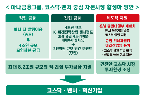 ÇϳªÀºÇàÀº Á¶Á÷ °³ÆíÀ» ÅëÇØ »óÀå ¿¹Á¤ ±â¾÷¿¡ ´ëÇÑ ±ÝÀ¶ Áö¿øÀ» °­È­Çϰí ÀÖÀ¸¸ç, ÇϳªÁõ±ÇÀº ÄÚ½º´Ú ½Å±â¼ú ¼ºÀå ±â¾÷À» Àü´ãÇÏ´Â Á¶»ç Á¶Á÷ÀÇ ´ã´ç ¿µ¿ªÀ» È®´ëÇÒ °èȹÀÌ´Ù.