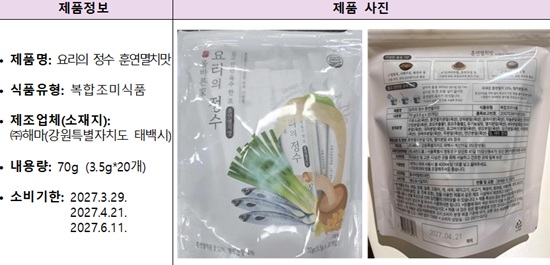 ½ÄǰÁ¦Á¶․°¡°ø¾÷üÀÎ (ÁÖ)ÇØ¸¶(°­¿øÆ¯º°ÀÚÄ¡µµ Źé½Ã ¼ÒÀç)°¡ Á¦Á¶¡¤ÆÇ¸ÅÇÑ ¡®¿ä¸®ÀÇ Á¤¼ö ÈÆ¿¬¸êÄ¡¸À(½ÄǰÀ¯Çü: º¹ÇÕÁ¶¹Ì½Äǰ)ÀÌ´Ù.