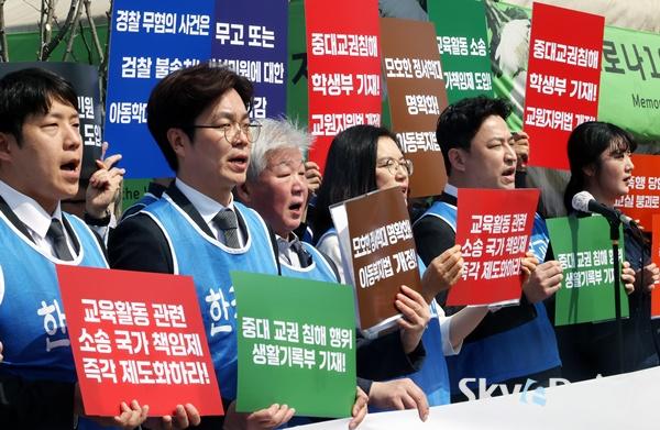 ¡ã Çѱ¹±³¿ø´ÜüÃÑ¿¬ÇÕȸ(±³ÃÑ) °ü°èÀÚµéÀÌ 15ÀÏ ±¹È¸ ¾Õ¿¡¼­ ¡®±³±Ç º¸È£ Á¦µµ °³¼± Ã˱¸ ±âÀÚȸ°ß¡¯À» ¿­°í ±¸È£¸¦ ¿ÜÄ¡°í ÀÖ´Ù. À̳¯ ±³ÃÑÀº ÆøÇࡤ»óÇØ µî Áß´ë ±³±Ç Ä§ÇØ »ç¾ÈÀÇ Çб³»ýȰ±â·ÏºÎ ±âÀ縦 °ñÀÚ·Î ÇÑ ±³¿øÁöÀ§¹ý °³Á¤ µî 5´ë ÇÙ½É ¿ä±¸»çÇ×À» ¹ßÇ¥ÇÏ¸ç ±¹È¸¿Í Á¤ºÎÀÇ Á¶¼ÓÇÑ ÀÔ¹ý ´ëÀÀÀ» Ã˱¸Çß´Ù. ÀÌÁ¾¿ø ±âÀÚ ¨Ï½ºÄ«À̵¥Àϸ®