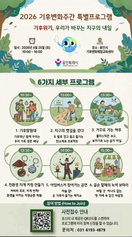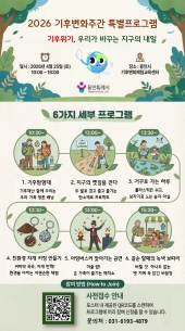 ½Ã´Â 22ÀϺÎÅÍ 25ÀϱîÁö ¿ëÀνà ±âÈĺ¯ÈüÇè±³À°¼¾ÅÍ¿¡¼ Ưº°ÇÁ·Î±×·¥ ¡®±âÈÄÀ§±â, ¿ì¸®°¡ ¹Ù²Ù´Â Áö±¸ÀÇ ³»ÀÏ¡¯À» °³ÃÖÇÑ´Ù. ±â°£ µ¿¾È À¯¾Æ¡¤ÃÊµî ´Üü ´ë»ó ±³À°°ú ½Ã¹Î Âü¿© ÇÁ·Î±×·¥, Àü¹®°¡ ¿öÅ©¼ó µîÀ» ÇÔ²² ¿î¿µÇØ ¿¬·Éº° ¸ÂÃãÇü ±âÈÄȯ°æ ±³À°À» Á¦°øÇÑ´Ù.