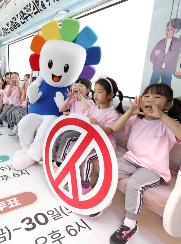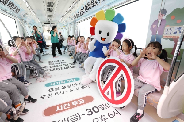 ¡ã 21ÀÏ ´ë±¸ ºÏ±¸ ´ë¿øÀ¯Ä¡¿ø ¿ø»ýµéÀÌ 6¡¤3 Áö¹æ¼±°Å¸¦ ¾Ë¸®´Â ´ë±¸ µµ½Ãöµµ 3È£¼± ¡®¼±°Å¿­Â÷¡¯¸¦ ½Ã½ÂÇϸç ÅõÇ¥Âü¿©¸¦ µ¶·ÁÇÏ´Â ÆÛÆ÷¸Õ½º¸¦ Çϰí ÀÖ´Ù. ´ë±¸½Ã¼±°üÀ§´Â 6¡¤3 Áö¹æ¼±°Å¿¡ ´ëÇÑ °ü½É°ú Âü¿© ºÐÀ§±â È®»êÀ» À§ÇØ ³»¡¤¿ÜºÎ¸¦ ¼±°Å °ü·Ã Á¤º¸·Î ²Ù¹Î ¡®¼±°Å¿­Â÷¡¯¸¦ ¿À´Â 6¿ù 3ÀϱîÁö ¿îÇàÇÑ´Ù°í ¹àÇû´Ù. ¿¬ÇÕ´º½º