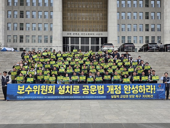 ¾ç´ë³ëÃÑ °ø°øºÎ¹® ³ëµ¿Á¶ÇÕ °øµ¿´ëÃ¥À§¿øÈ¸´Â 22ÀÏ ±¹È¸ º»Ã» ¾Õ °è´Ü¿¡¼­ ¡®º¸¼öÀ§¿øÈ¸ ¼³Ä¡·Î °ø¿î¹ý(°ø°ø±â°üÀÇ ¿î¿µ¿¡ °üÇÑ ¹ý·ü) °³Á¤ ¿Ï¼ºÇ϶ó! ½ÇÁúÀû ±³¼·±Ç º¸Àå Ã˱¸ ±âÀÚȸ°ß¡¯À» ¿­¾ú´Ù. ¾ö±æ¿ë °ø°ø¿î¼ö³ëÁ¶ À§¿øÀåÀº ¡°Á¤ºÎ´Â Áö±Ý ¾Ç´ö »ç¿ëÀÚÀÇ ¸ð¹üÀÌ µÇ°í ÀÖ´Ù¡±¸ç ¡°°ø°ø±â°ü ³ëµ¿ÀÚÀÇ ÀΰǺñ, ÀηÂ, º¹¸®ÈÄ»ý µî ¸ðµÎ Á¤ºÎ°¡ Á¤ÇÏÁö¸¸ »ç¿ëÀÚ¼ºÀ» ÀÎÁ¤Çϰí ÀÖÁö ¾Ê´Ù¡±°í °­ÇÏ°Ô ÁöÀûÇß´Ù.